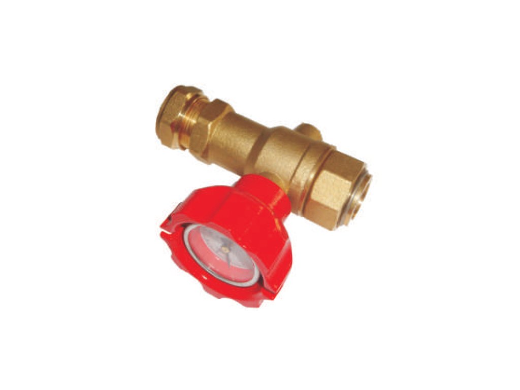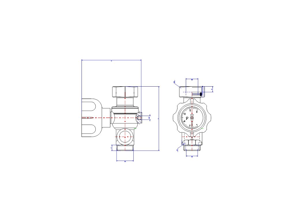 Guľový ventil s teplomerom G1, sp.klap.160ST/320F a maticou - červeny